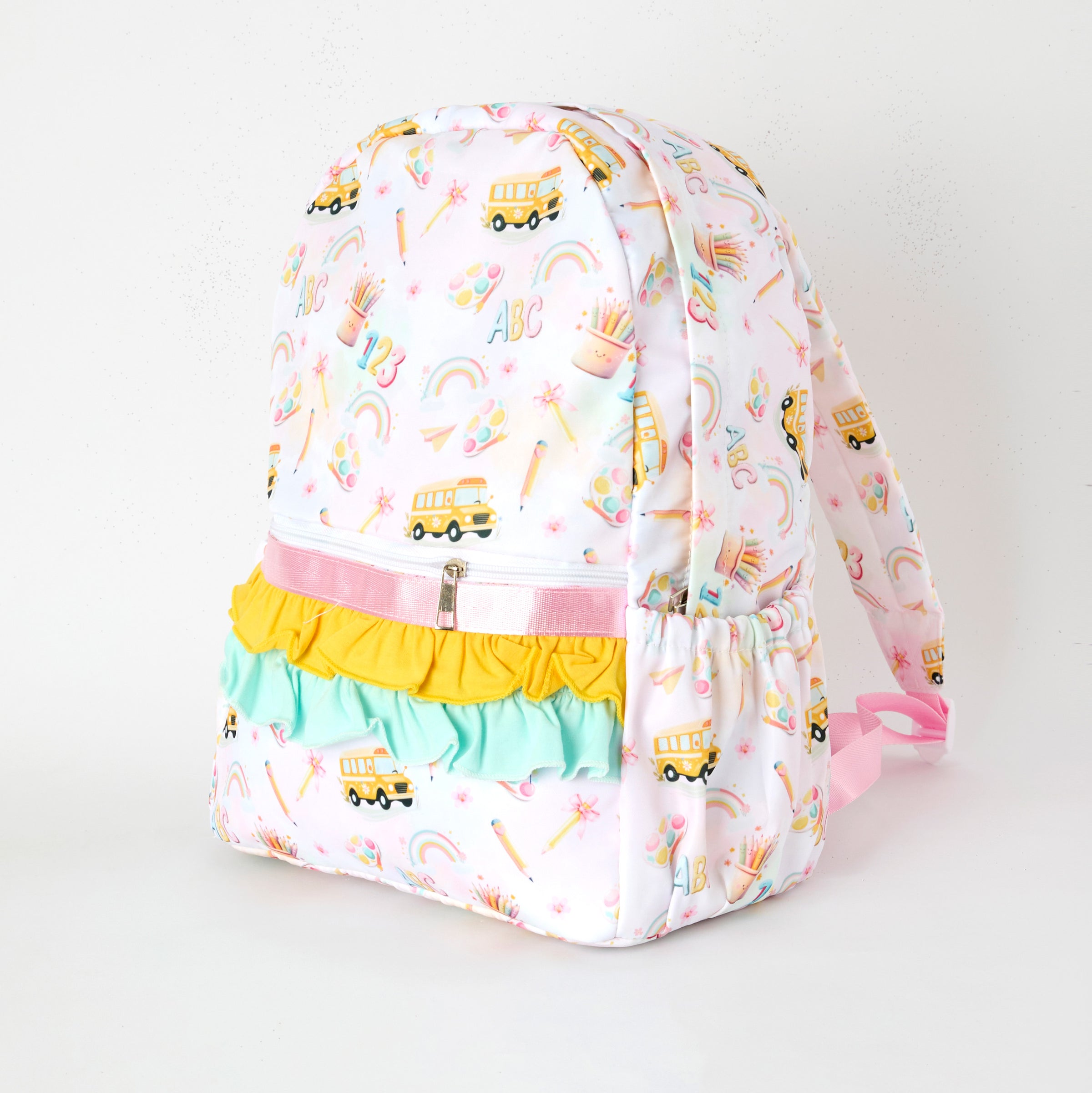 BACK TO SCHOOL PINK BOW PENCIL RUFFLE DRESS