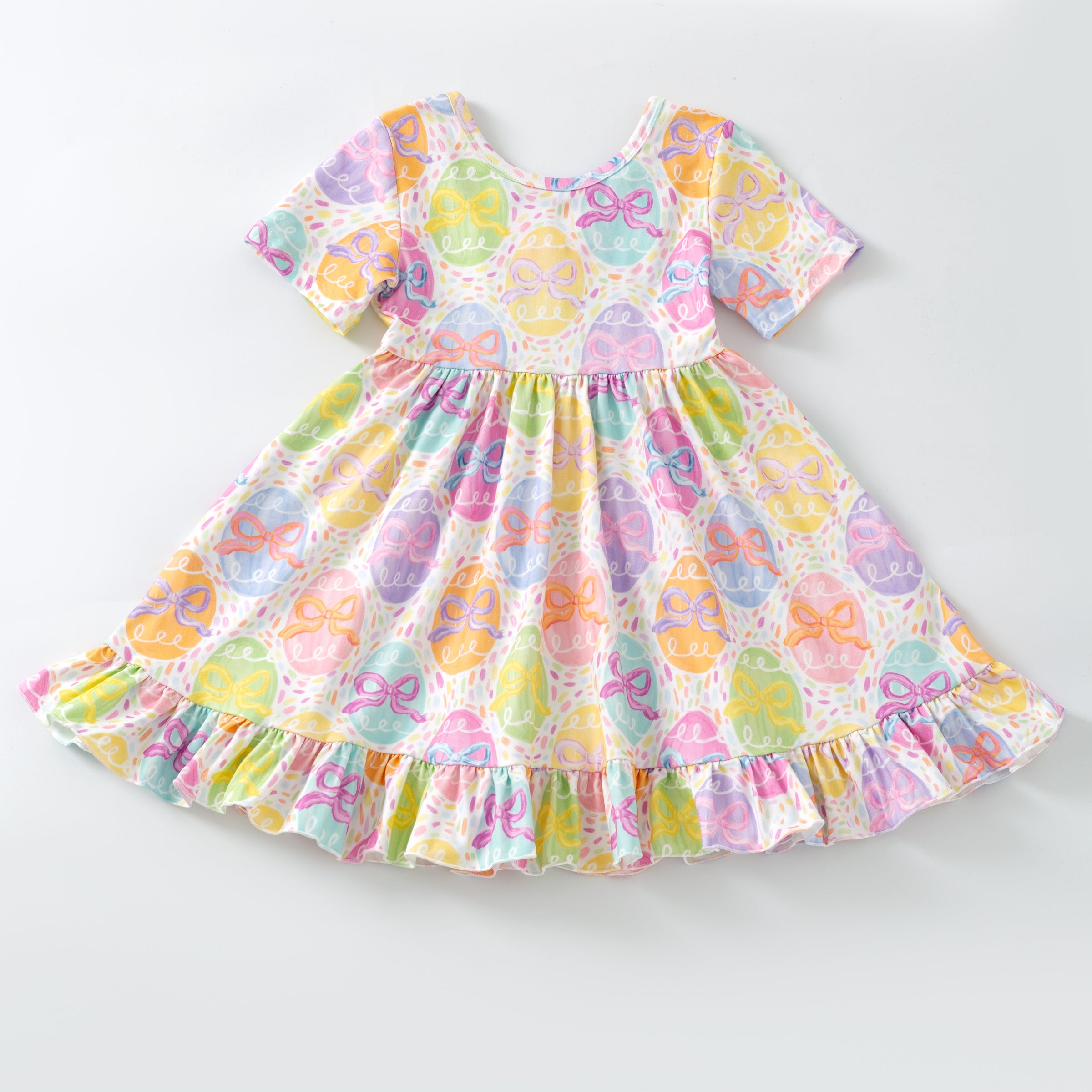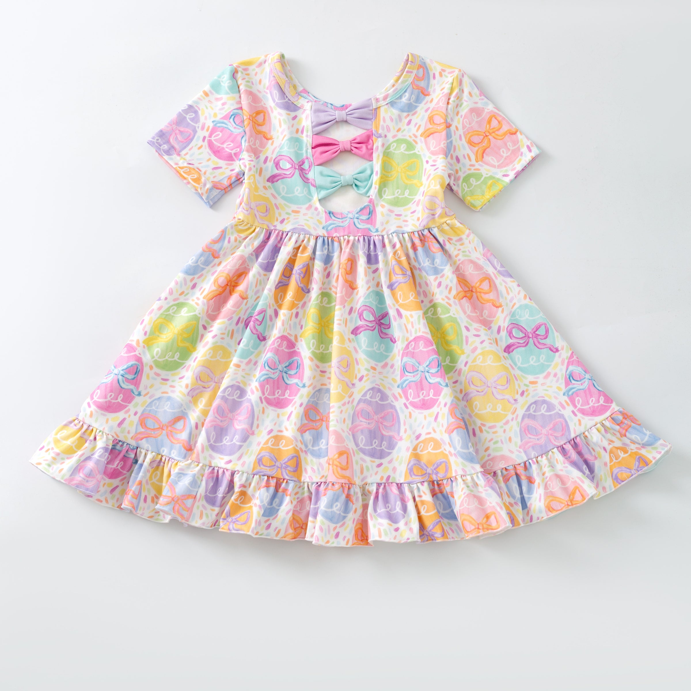 EASTER EGGS BACK BOW DRESS - Easter2026
