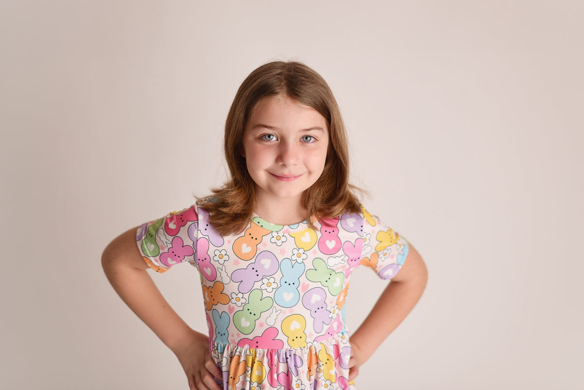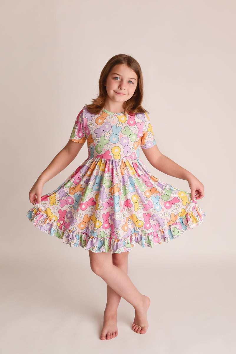 RAINBOW EASTER BUNNY BACK BOW DRESS